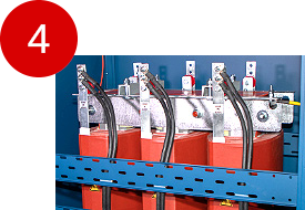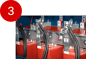 Special high-current cable terminations prevent thermal losses and enhance the performance of the transformers.