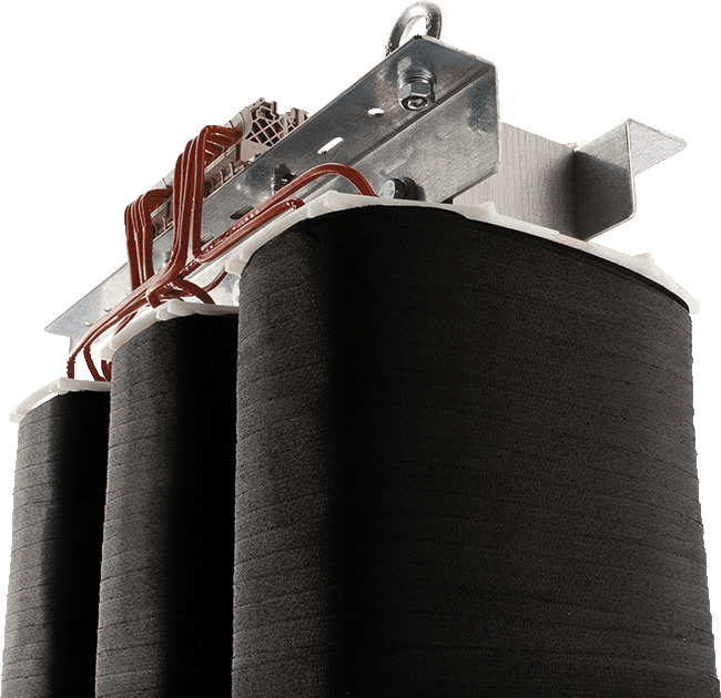 Leading-edge foil technology eliminates the gaps created during winding and minimizes the size and weight of the transformer in relation to its power.