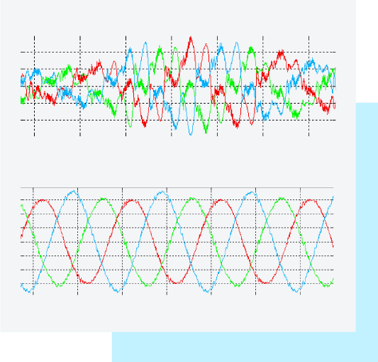 With the use of active filters, harmonics are eliminated at their creation before entering the network; as a result, the electrical installations are protected against undesired and harmful consequences.